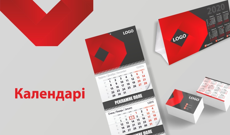 Квартальний календар, 3 календарних блоки, 3 рекламні поля