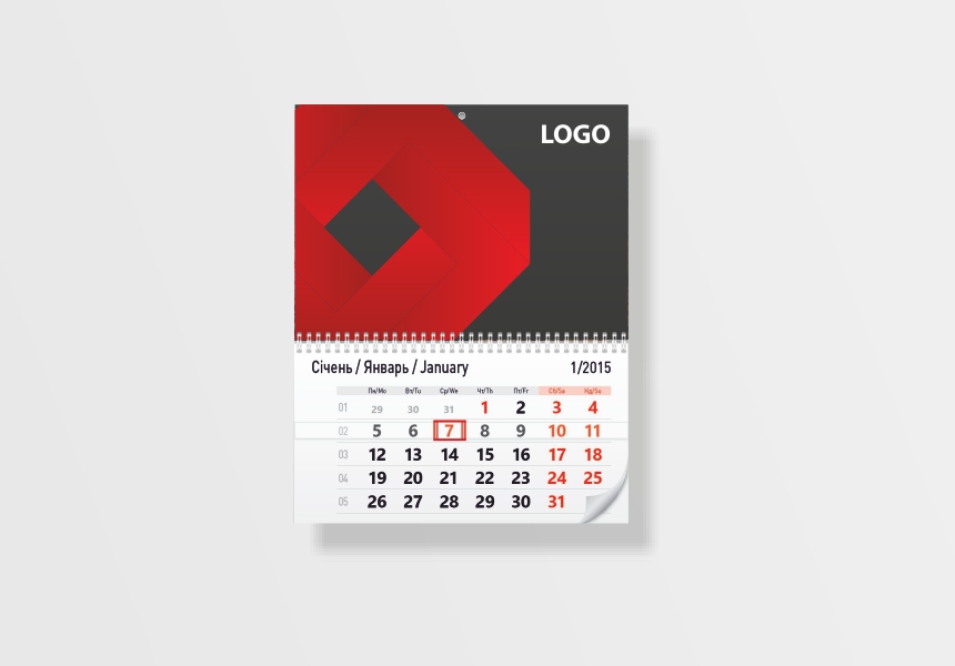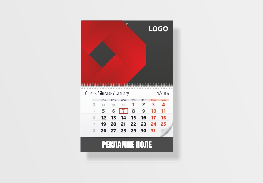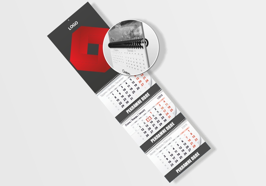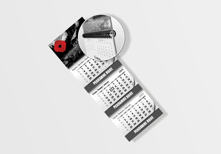 Квартальний календар, 1 пружина, 1 рекламне поле