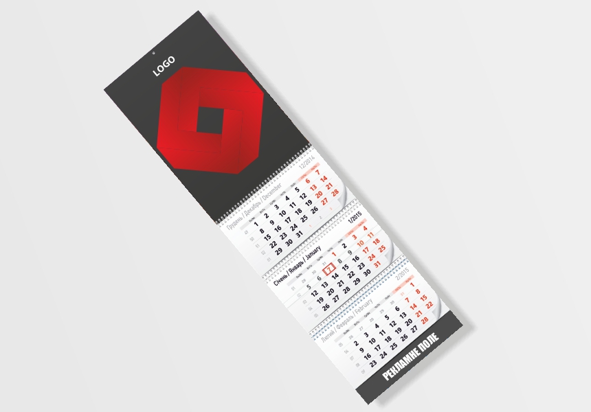 Квартальний календар, 3 календарних блоки, 1 рекламне поле