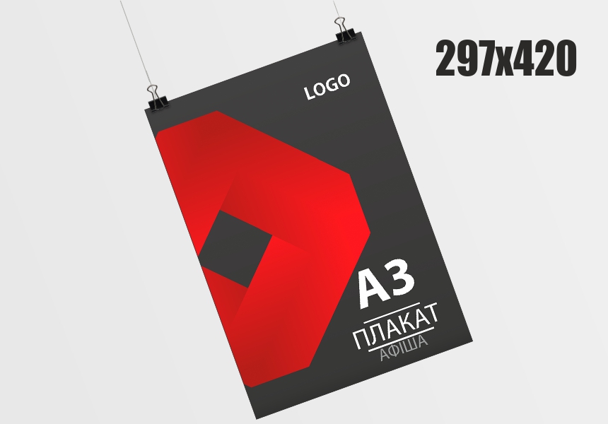 Плакат, афіша формату А3 297х420 мм. Односторонній кольоровий друк.