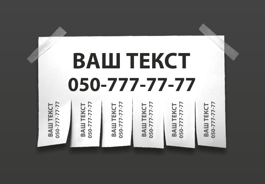 Ч/б оголошення формату А5. Матеріал: офсетний папір 80 г/м. черно-білий друк с однієї сторони
